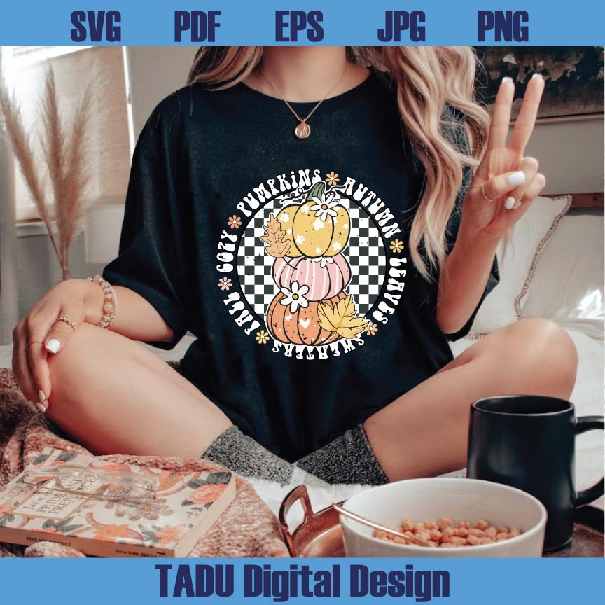 Checkered Fall Pumpkins Png Retro Autumn Png Cute Girly Fall Png Svg Eps Dxf Cut Files