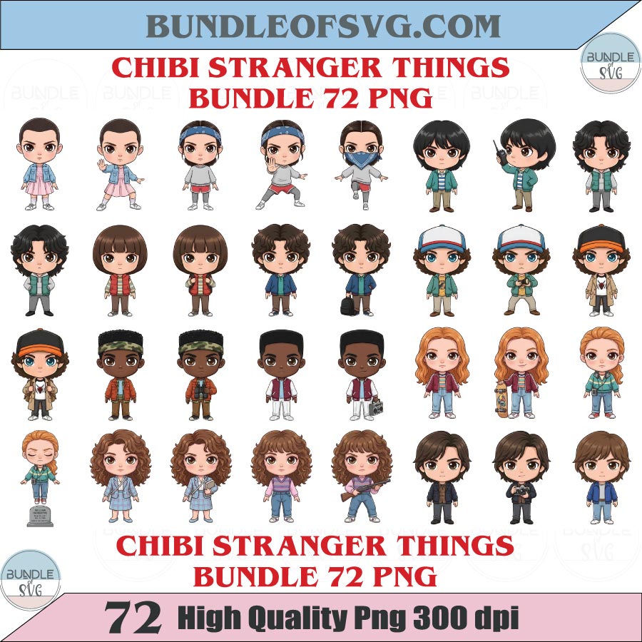 Chibi Stranger Things Png Clipart Bundle Chibi Stranger Png Set Sublimation Designs Dtf Files