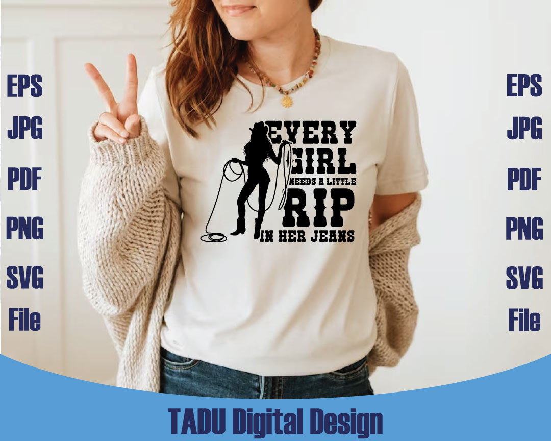Every Girl Need A Little Rip In Her Jeans Svg Western Country Girl Png Svg Eps Dxf Cut Files
