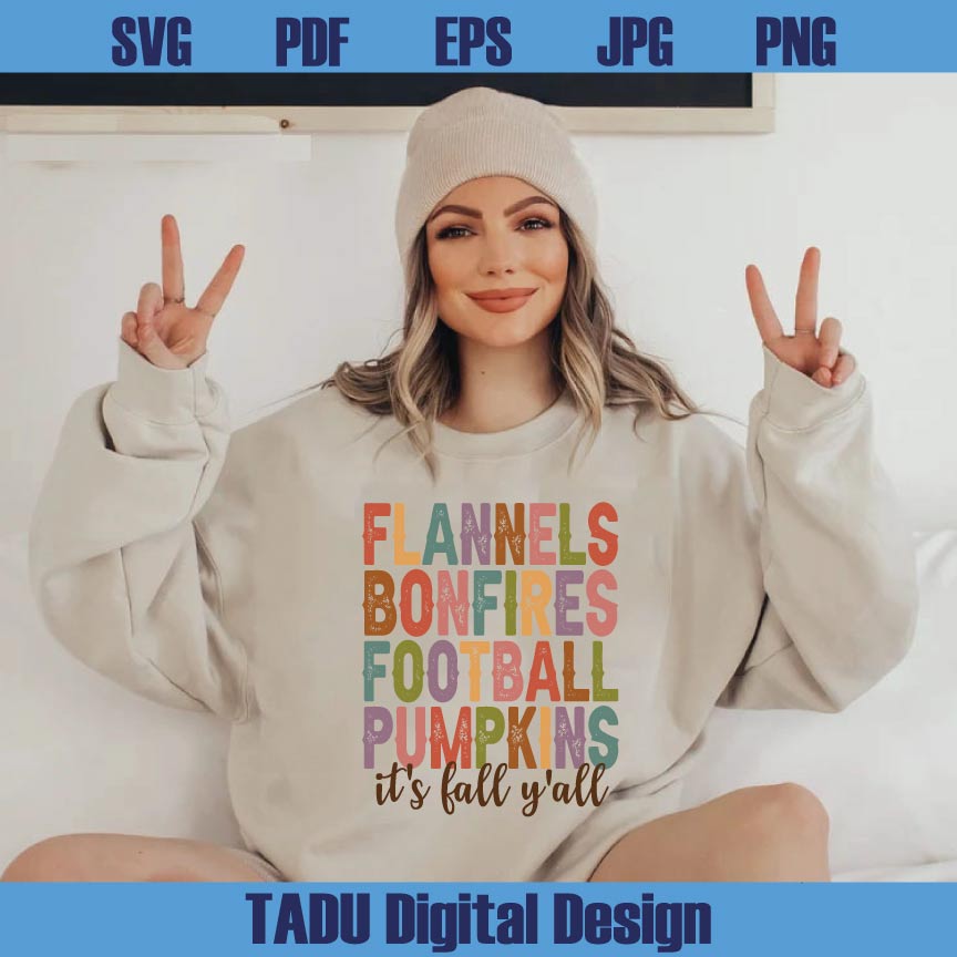 Flannels Bonfires Football Pumpkins Png It's Fall Y'all Svg Autumn Png Svg Eps Dxf Cut Files