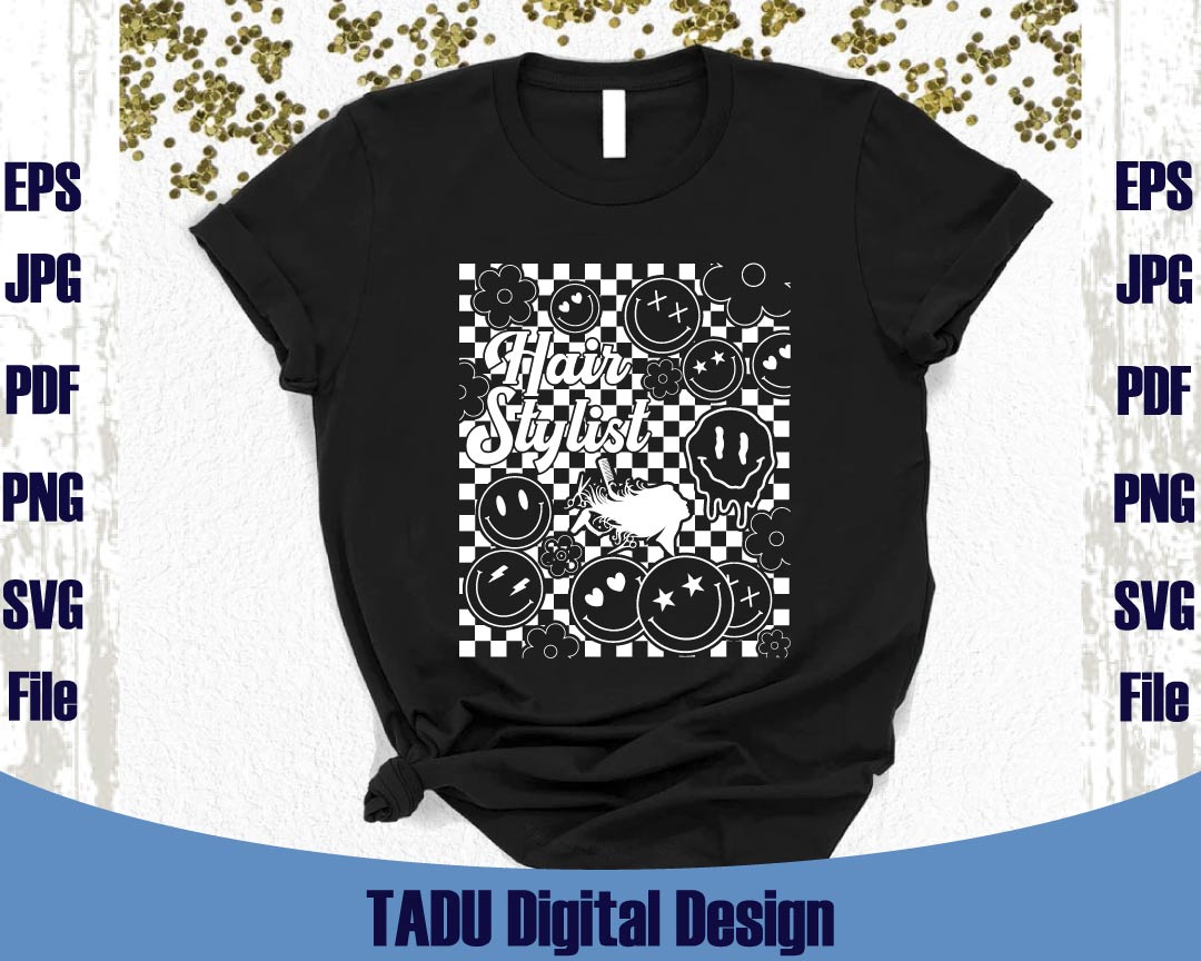 Hair Stylist Svg Checkered Smiley Face Hairstylist Png Hairdresser Svg Png Dxf Eps Cut Files