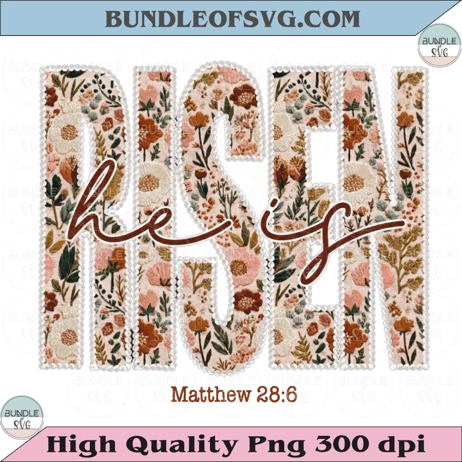 He Is Risen Floral Png Matthew 28:6 Spring Easter Christian Png Clipart High Quality 300 dpi Dtf Sublimation 2 Designs Files