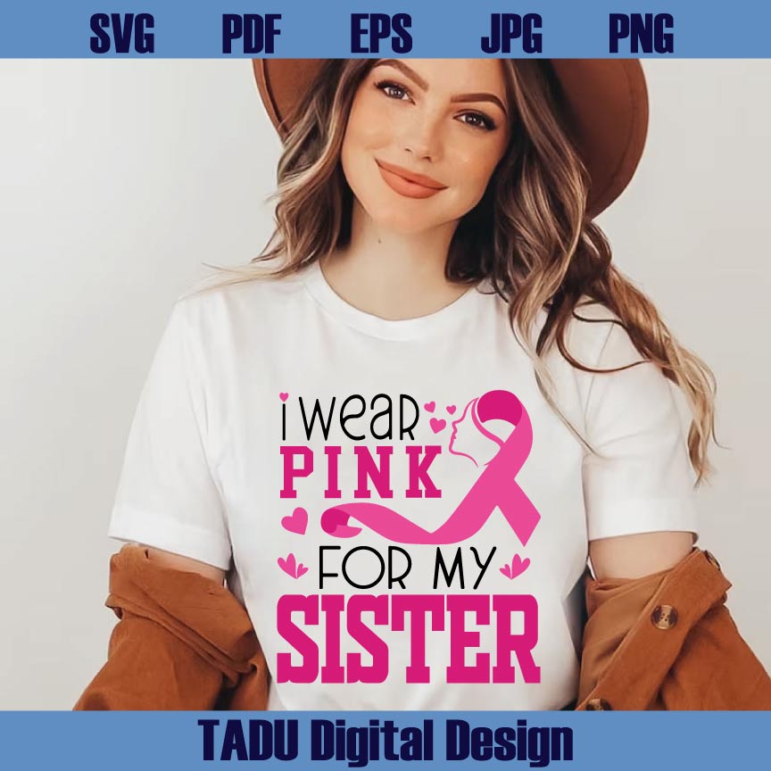 I Wear Pink for My Sister Svg Brest Cancer Awareness Png Cancer Svg Png Eps Dxf Cut Files