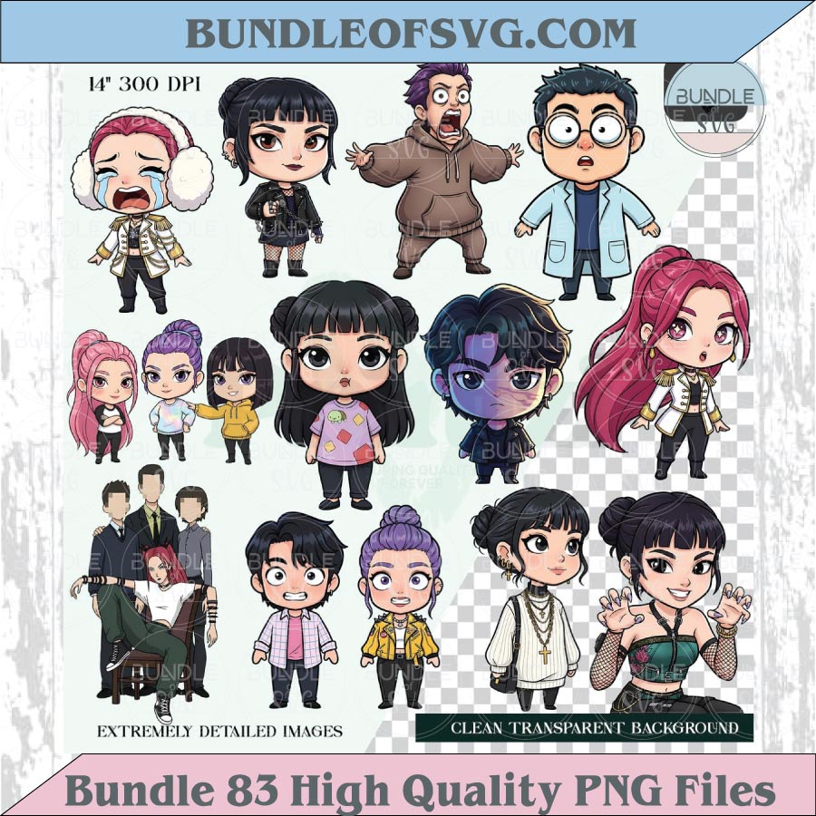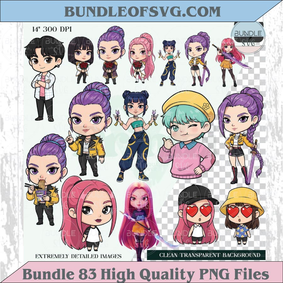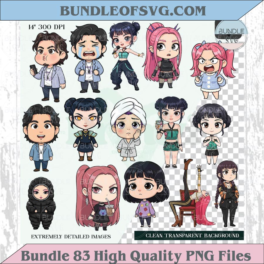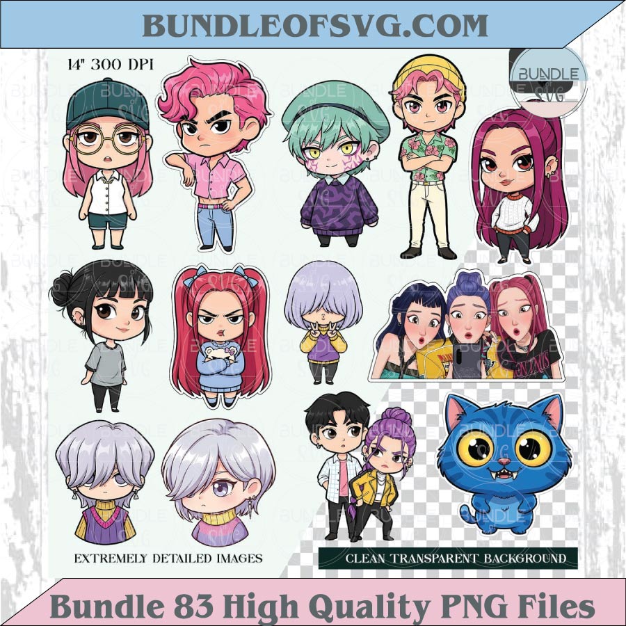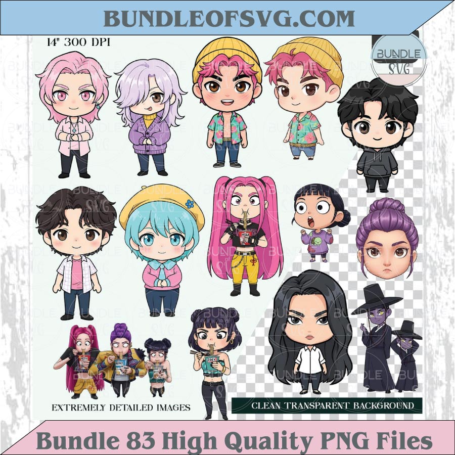 Kpop Demon Hunters Chibi Png Clipart Bundle Cute Kawaii Kpop Png Eps 83 Files