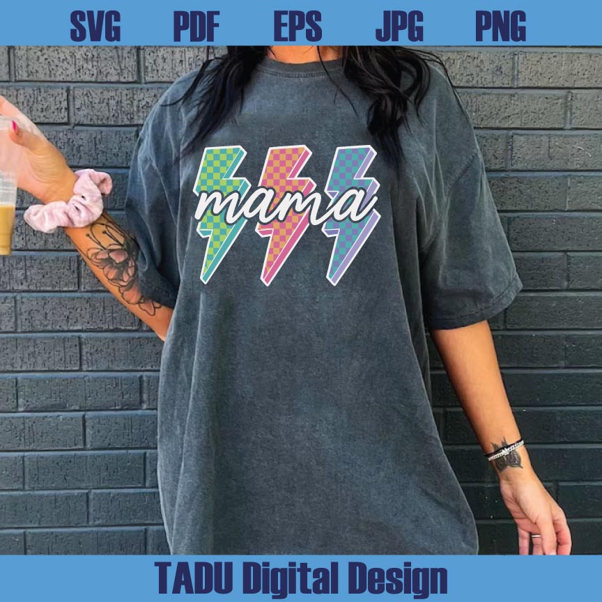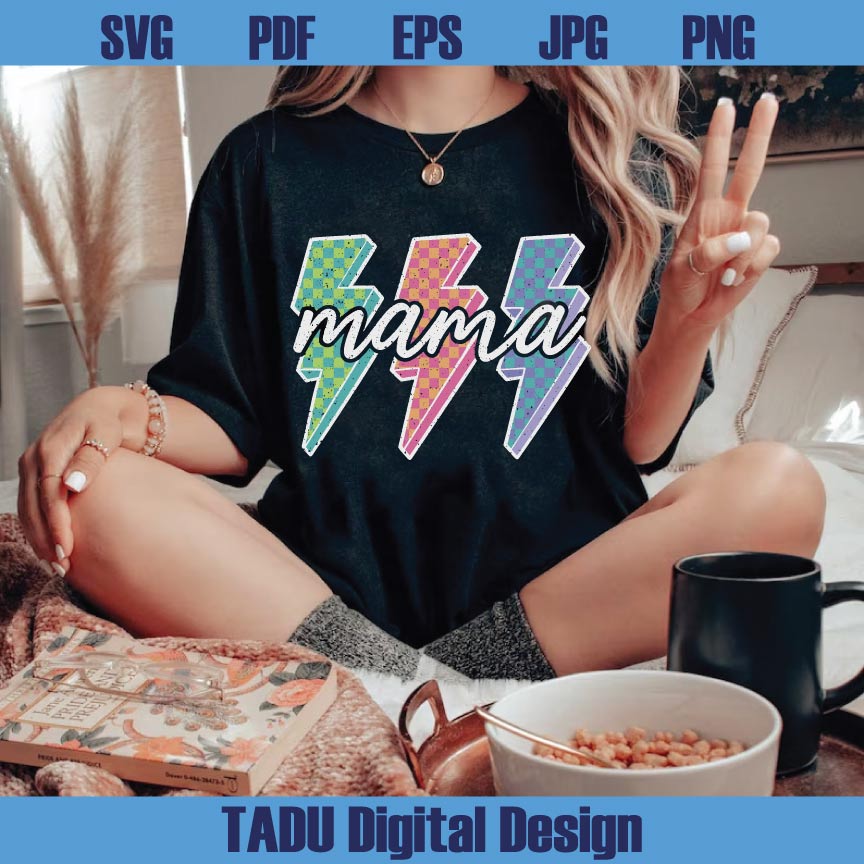 Lightning Checkered Mama Png Neon Mama Png Lightning Bolt Mom Png Svg Eps Dxf Files