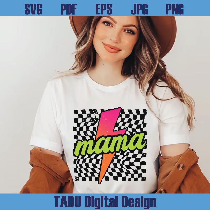 Neon Lightning Bolt Checkered Mama Png Lime Green Mom Life Png Svg Eps Dxf Files