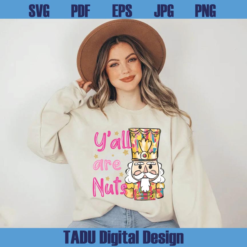 Pink Glitter Christmas Nutcracker Png Y'all are Nuts Png Brushstroke Png Clipart High Quality 300 dpi Dtf Sublimation 2 Designs Files