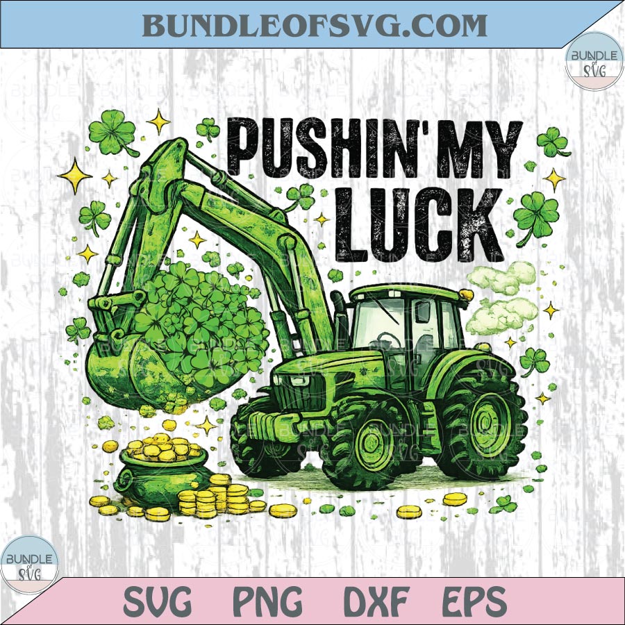 Pushin My Luck Png Excavator Construction St Patrick's Day Boy Png Clipart High Quality 300 dpi Dtf Sublimation 2 Designs Files