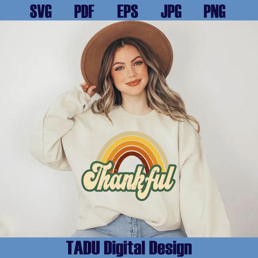 Rainbow Thankful Png Vintage Thanksgiving Svg Retro Thankful Png Svg Eps Dxf Files