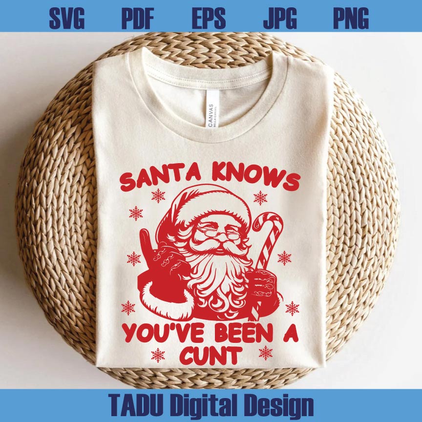 Santa Knows You've Been A Cunt Svg Santa Christmas Humor Png Svg Eps Dxf Files