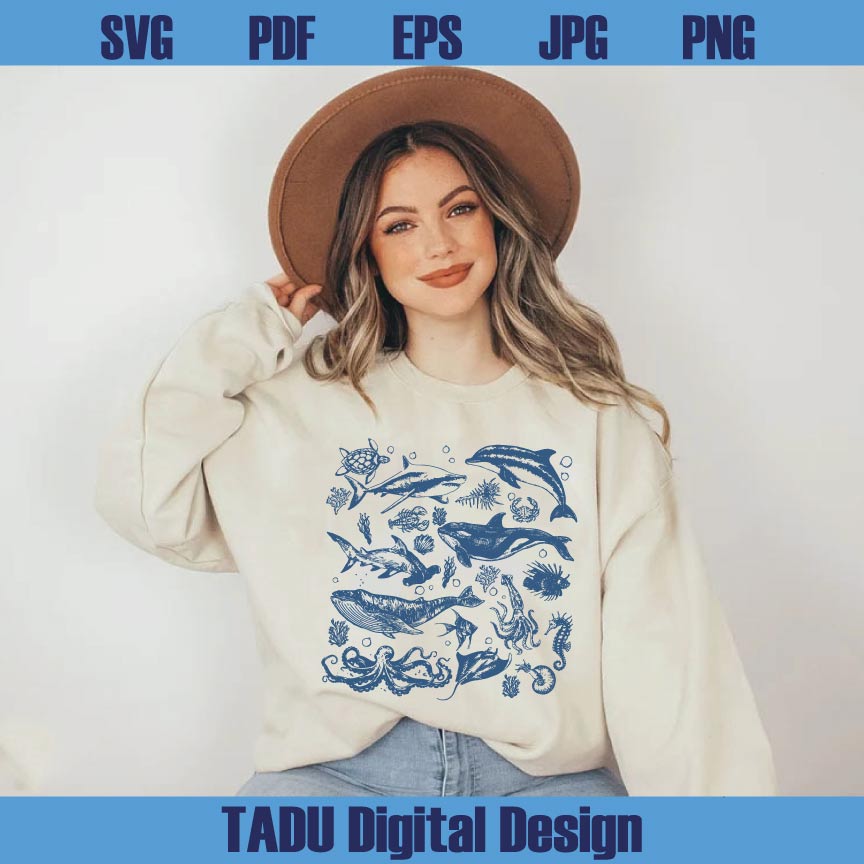 Sea Creatures Png Vintage 90s Tattoo Sea Animal Png Ocean Sealife Svg Png Eps Dxf Files